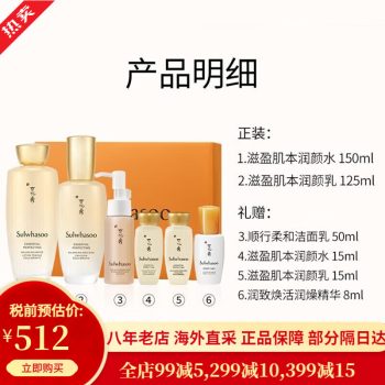 雪花秀韩国水乳套装滋盈肌本女士护肤品礼盒滋润平衡补水礼物套盒 包税