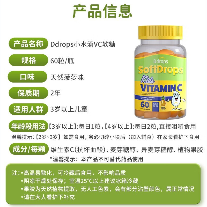 【包税】Ddrops 滴卓思 软糖复合维生素C VC 补锌 补钙 增强免疫力 叶黄素护眼 儿童宝宝