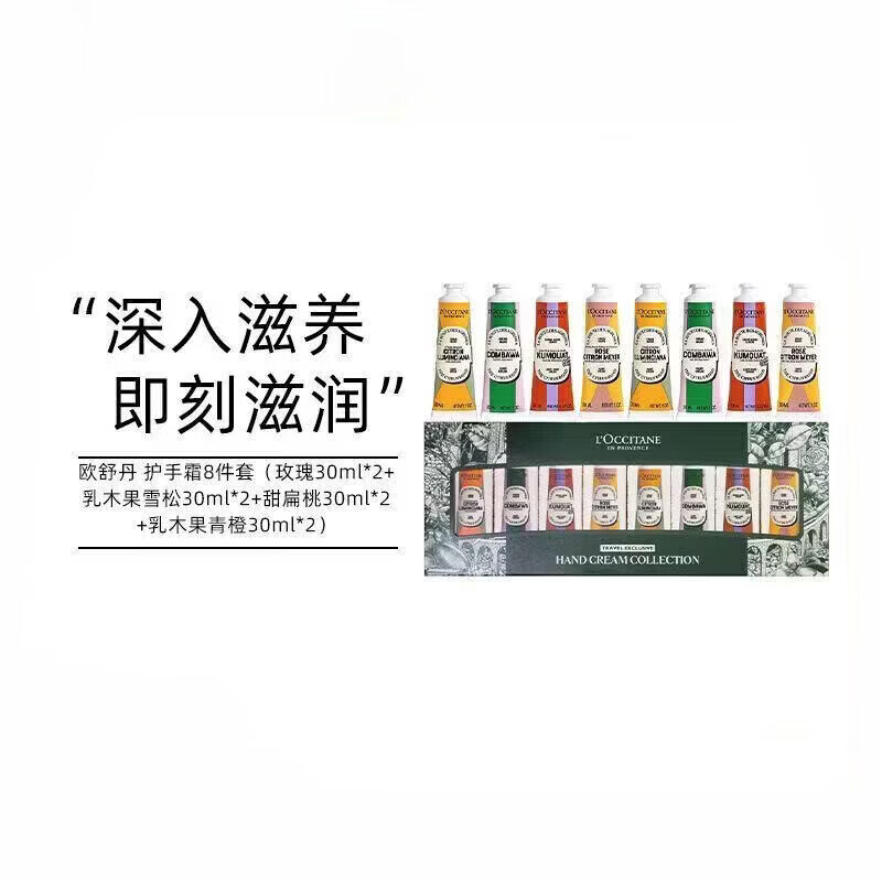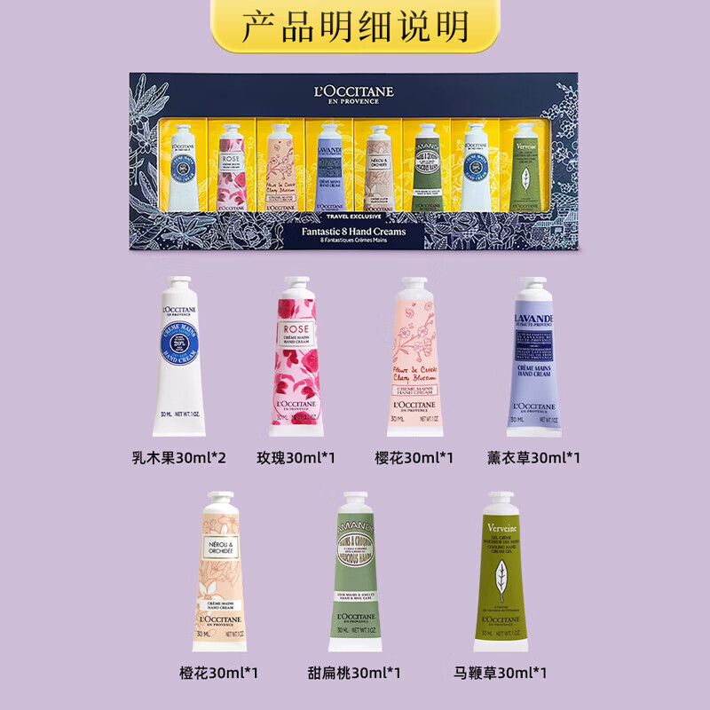 欧舒丹(L’OCCITANE)护手霜礼盒八件套 樱花乳木果甜扁桃马鞭草玫瑰男女保湿滋润补水