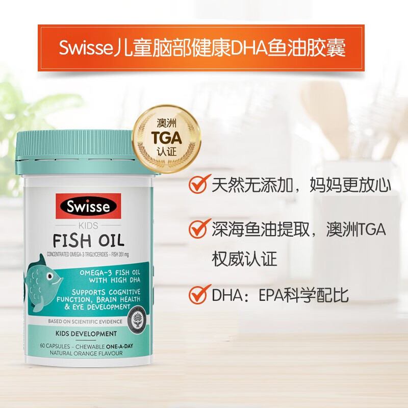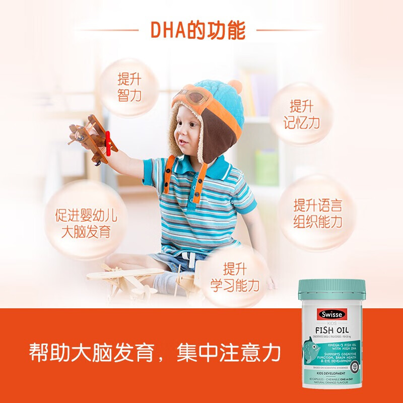 澳洲进口swisse儿童钙+维生素d3增强免疫骨骼发育成长脑部健康鱼油DHA复合维生素vc咀嚼片