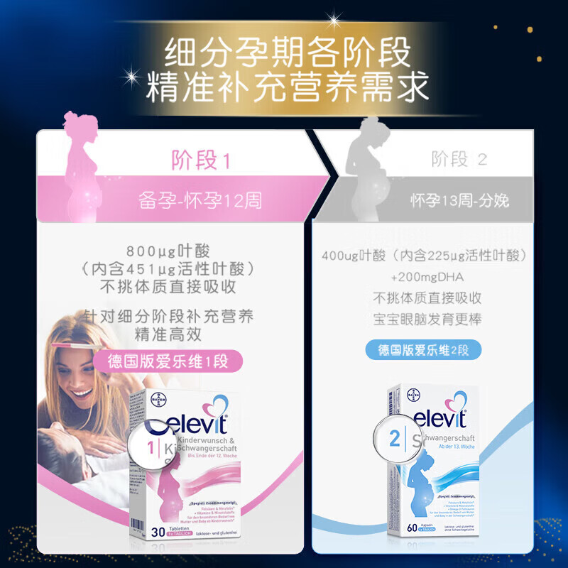 爱乐维复合维生素孕妇叶酸男士营养片备孕前中后期专用 艾乐维Elevit