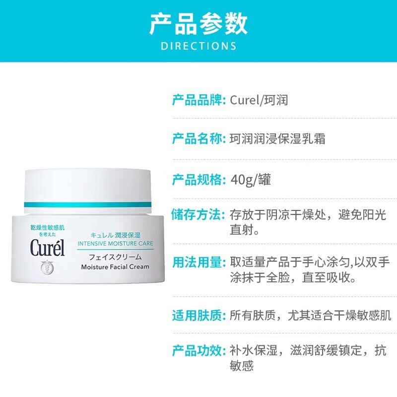 珂润(Curel)面霜水乳套装润浸保湿滋养霜男女敏感肌可用 日本花王