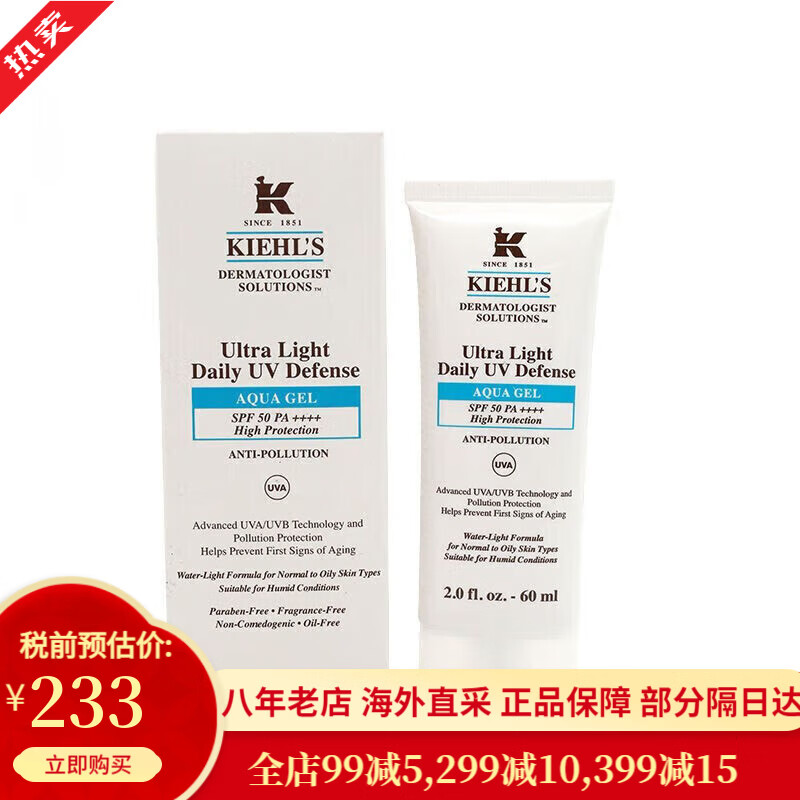 科颜氏(Kiehl’s)防晒霜隔离乳小冰盾小橘盾干皮敏感肌可用油皮不粘腻护肤品