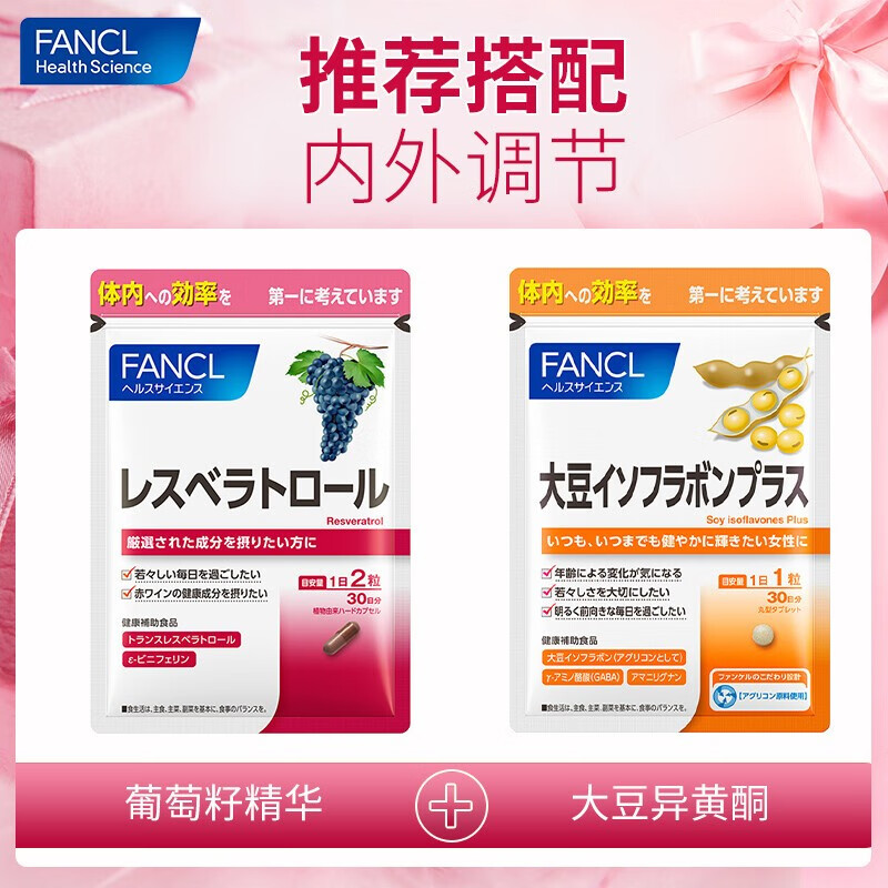 芳珂(FANCL)葡萄籽精华胶囊 美白淡斑 活性深入抗衰 大豆异黄酮 温和养颜