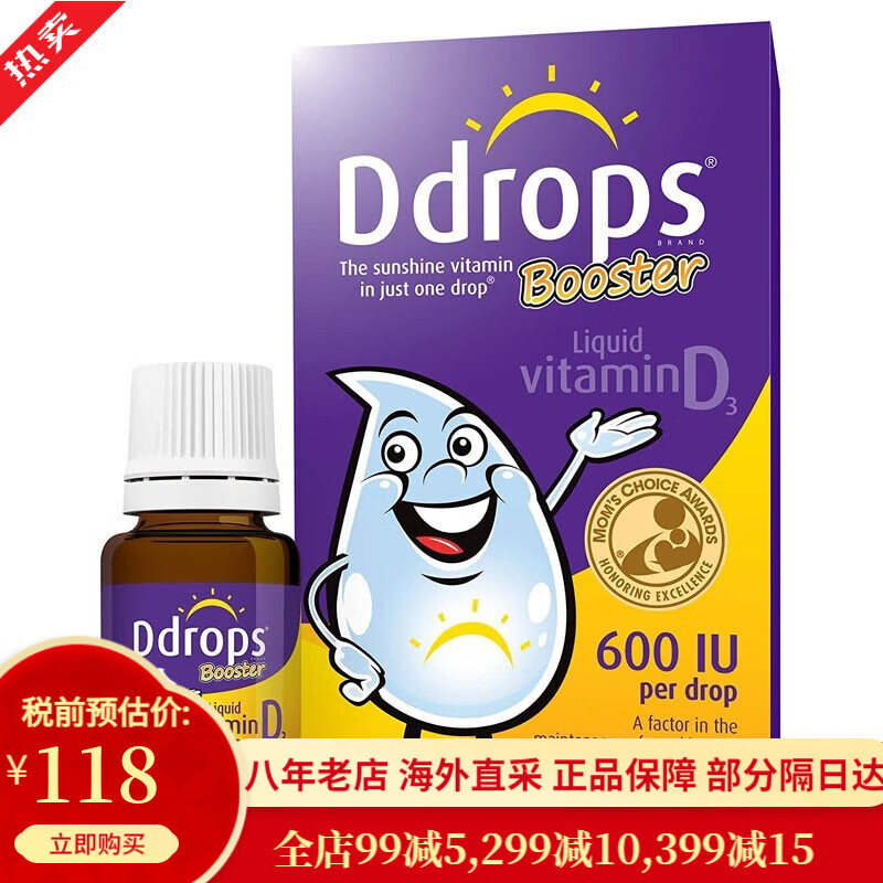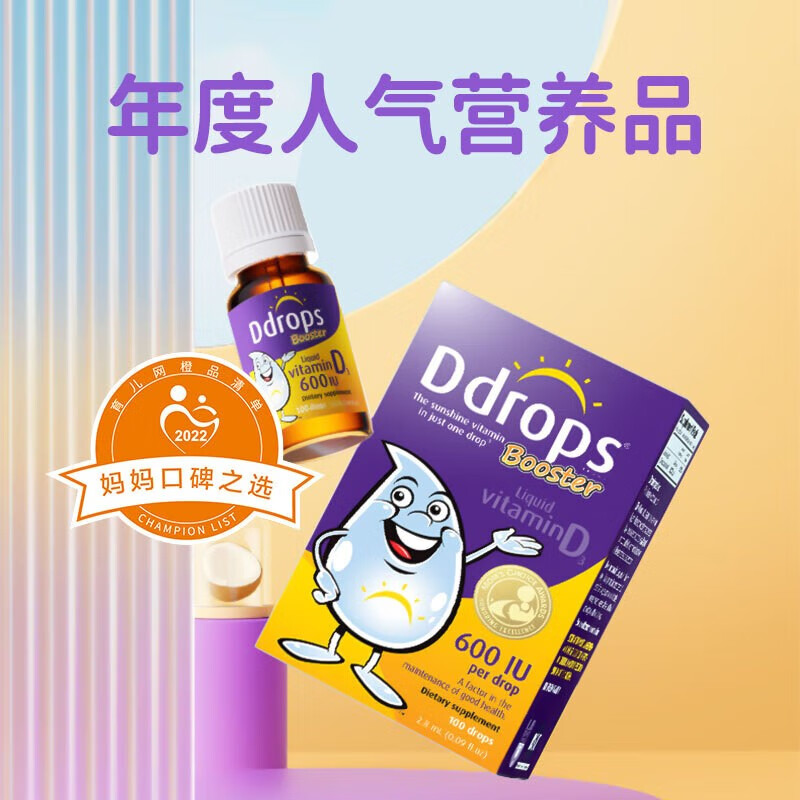 Ddrops 滴卓思儿童宝宝维生素D3滴剂 宝宝vd3 钙吸收营养搭档 AD滴剂
