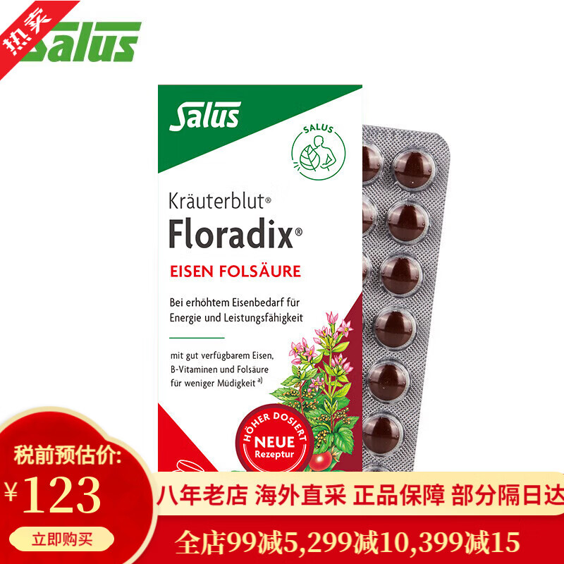 FLORADIX德国铁元补铁补血原产 成人产后女孕妇孕期营养品 莎露斯