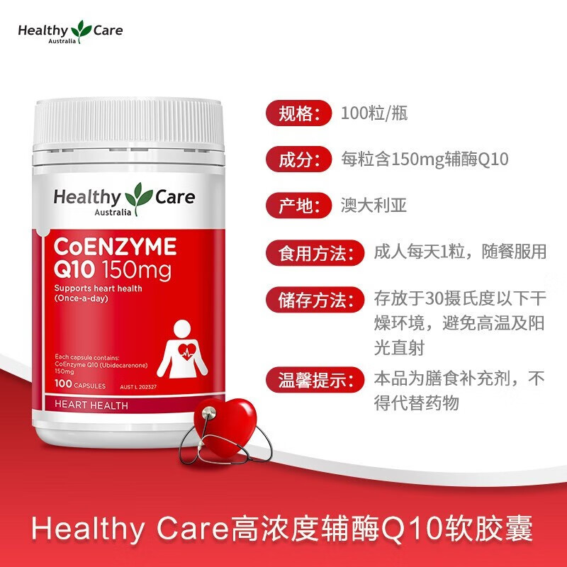 Healthy Care HC辅酶q10胶囊 高浓缩辅酶软胶囊 呵护心血管健康 澳洲原装进口 澳世康