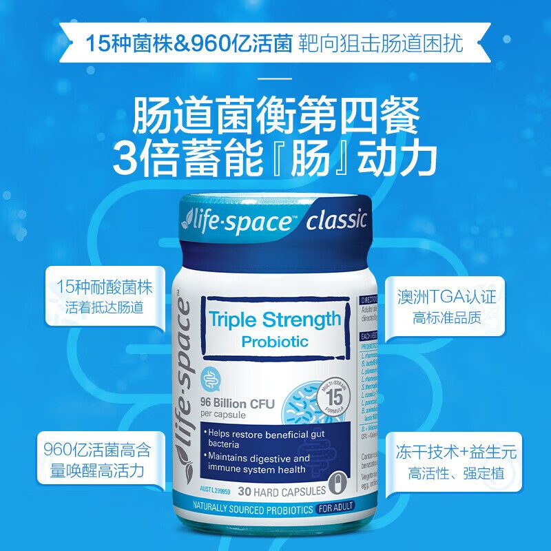 成人三倍益生菌胶囊30粒/瓶